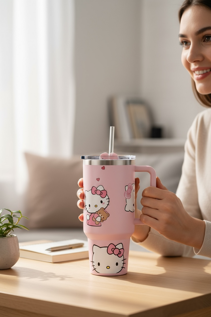 Hydrate in style with the Limited Edition Hello Kitty x Stanley 40oz Tumbler — a playful fusion of durability and cuteness! This is a 100% authentic Stanley Quencher tumbler, upgraded with Most Loved Hello Kitty-Themed waterproof stickers that make every sip a statement.